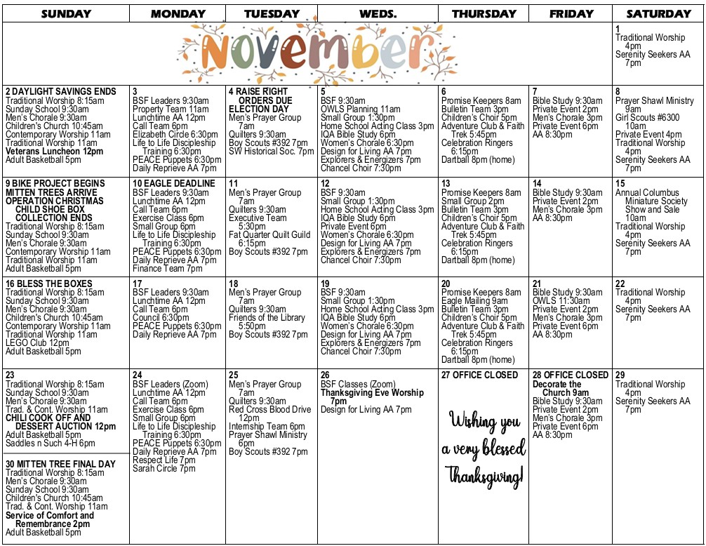 • Calendar – November, 2024